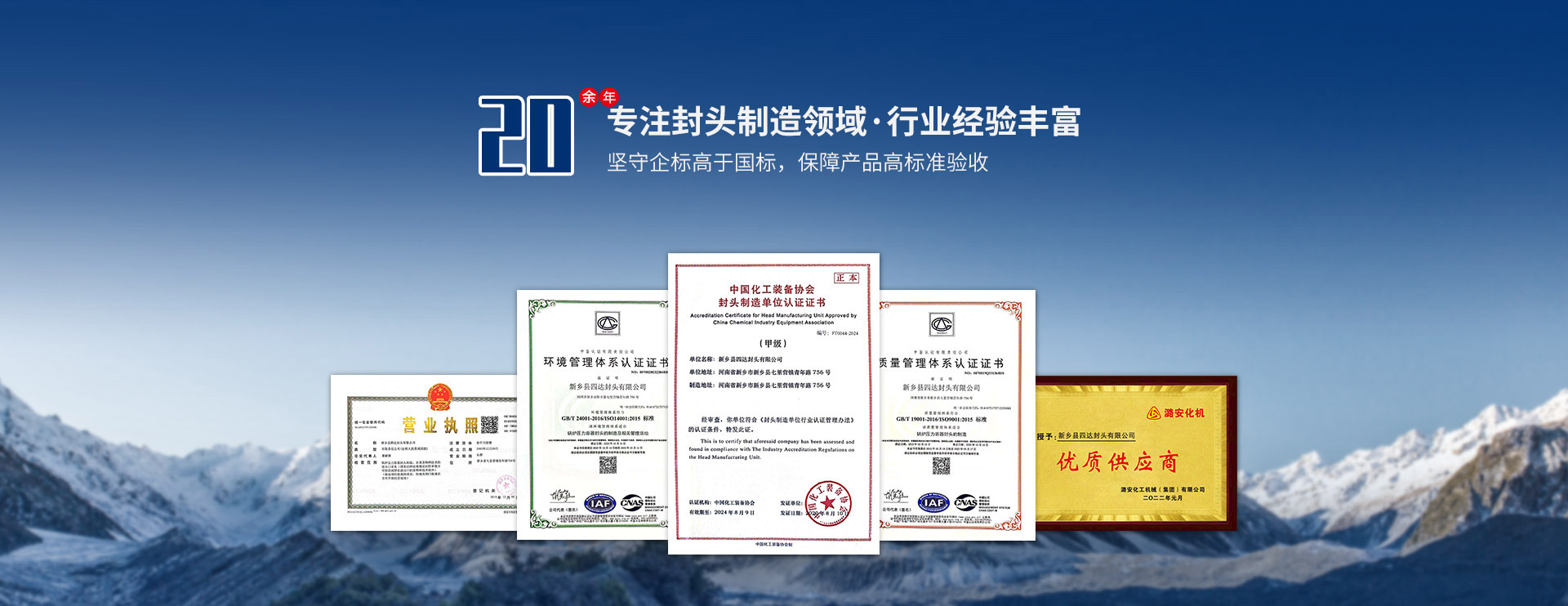 遵循國(guó)家標(biāo)準(zhǔn)、美國(guó)ASME標(biāo)準(zhǔn)生產(chǎn),取得A3級(jí)鍋爐壓力容器部件生產(chǎn)許可,中國(guó)化工裝備協(xié)會(huì)封頭甲級(jí)認(rèn)證,為產(chǎn)品提供資質(zhì)保障;